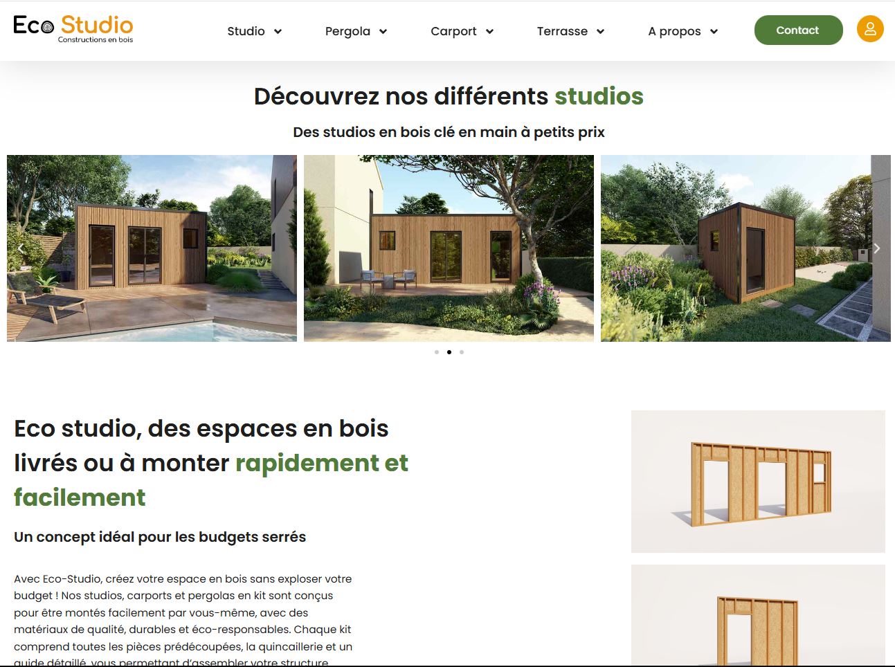 Site web e-commerce pour un studio d'architecture spécialisé dans les bâtiments écologiques et durables.
